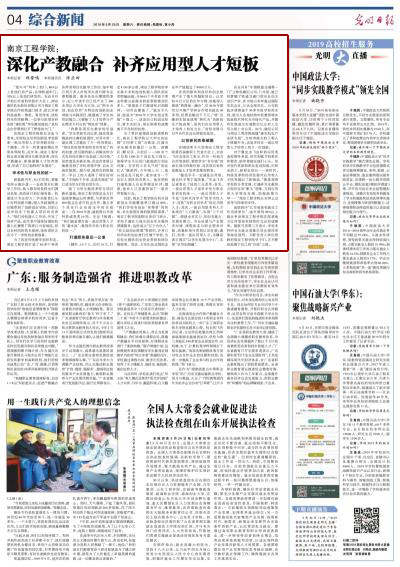 5月25日,《光明日报》四版头条以《永利集团3044am官方入口:深化产教融合 补齐应用型人才短板》为题,从“学术性与职业性的统一”“打通服务最后一公里”“以创新的思维破题”三个方面深度报道永利官网在一流应用型人才培养方面的特色做法和实践成果,集中展示了永利官网全面实施项目化教学改革,深化产教融合,破解人才培养困境的积极探索。现将报道全文转载如下:深化产教融合 补齐应用型人才短板本报记者 郑晋鸣 本报通讯员 许应田《光明日报...