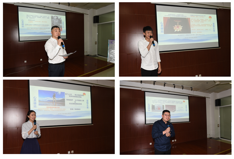 活动现场,4名师生分别向大家推荐了展览中的优秀展品,分享了展品背后的故事。光电信息161班第二班主任汪强老师向大家推荐了《习近平的七年知青岁月》一书,希望同学们从小故事中读出大道理,从口述史中洞察大时代,从真情怀中感受大担当,从奋斗史中汲取大智慧。光电171班蔡英汉同学分享了一枚军功章背后的故事(展品由输电172班刘啸同学提供)。这枚军功章见证了刘啸从高校青年到优秀士兵的蜕变,见证了他从男孩到男子汉的成长,见证了无数个像刘啸一样立志报国的大学生投身军营报效祖国的无悔青春。信息171班班主任朱力老师从四川省建川博物馆中国抗战老兵手印广场组图说起(展品由信息172班施炘怡同学提供)。广场上每个手印的主人都是当年参加过抗战的老兵,这些当年还显稚嫩而年青的手,挡住了来势汹汹的日本侵略者,托起了整个中华民族的未来。老兵身上所体现的为国尽忠、为民族而战的坚韧品质是我们当下青年所需要传承的宝贵精神。光电162班段宁璨同学在《我相信》歌声中开始她的述说,这是一首多名同学推荐的歌曲,歌曲传达出了青春是需要奋斗的,只要坚定信念、相信自己,就一定会驶向胜利的彼岸。