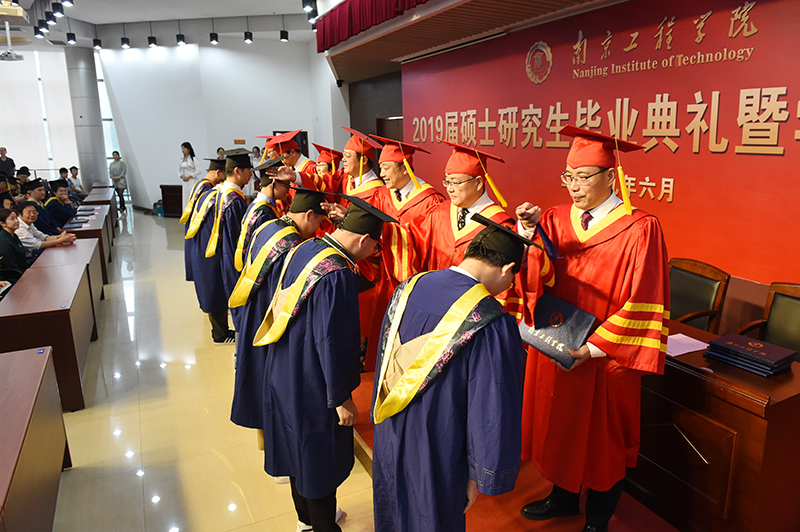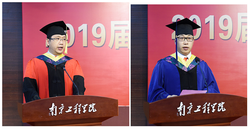 电气工程领域研究生导师陆旦宏代表全体导师以“学以致用”的校训与大家共勉,希望同学们今后以自主之精神终身学习,以创新之精神用于实践,实现自我超越,助推自己勇往直前,成为母校的骄傲。毕业生代表机械工程领域戴建伟同学表达了对母校的深深眷恋与不舍。“重回首,去时年,揽尽风雨苦亦甜;夜阑珊,读无眠,听尽别时言。工程学院,承载了大家太多太多深情镌刻的记忆与难以割舍的情怀。”“落其实者思其树,饮其流者怀其源”,他代表2019届全体研究生感谢母校,感谢老师,铭记母校给予的每笔财富,并希望同学们牢记“今日的南工程,是前人铸就的;明日的南工程,要靠我们来续写新的辉煌!”
