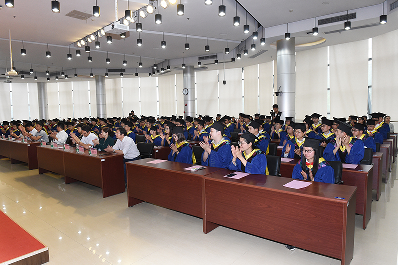 毕业典礼上,党委副书记、院长史金飞向今年毕业的硕士专业学位研究生表示最热烈的祝贺,向对同学们给予悉心指导和关怀的老师、家人致以最诚挚的敬意。史院长说,在三年来的研究生时光里,同学们在学习钻研中体验快乐,在实践创新中历练成长,在多元文化中培育品质,在科研探索中彰显卓越。在同学们即将背上行装,离开校园,走向大千世界之时,史院长代表学校送上了诚挚的期望。一是要坚持终身学习,知深行远,拥抱美好未来;二是要坚持矢志奋斗,知难而进,建设美好未来;三是要坚持创新创业,知行统一,创造美好未来。希望同学们带着对知识的渴望,对理想的坚持,对责任的担当,去开拓一番美好而精彩的未来。