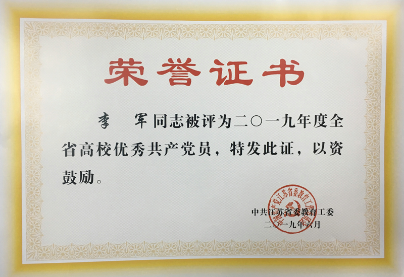 为庆祝建党98周年,七一前夕,中共江苏省委教育工委下发《省委教育工委关于表彰2019年度全省高校优秀共产党员、优秀党务工作者、先进基层党组织的决定》(苏委教组〔2019〕40号),对全省高校67名优秀共产党员、33名优秀党务工作者、50个先进基层党组织予以表彰。永利官网材料科学与工程学院党委喜获“2019年全省高校先进基层党组织”称号,电力工程学院党委李军同志荣获“2019年全省高校优秀共产党员”称号。