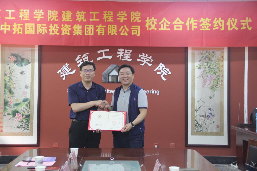 7月2日下午,永利官网与江苏中拓国际投资集团有限公司正式签订校企合作协约,公司董事长丁先喜同时受聘为永利官网客座教授。签约和受聘仪式在建筑工程学院设计南楼209会议室举行,党委常委、副院长张仰飞、中拓集团丁先喜董事长出席签约仪式并讲话。