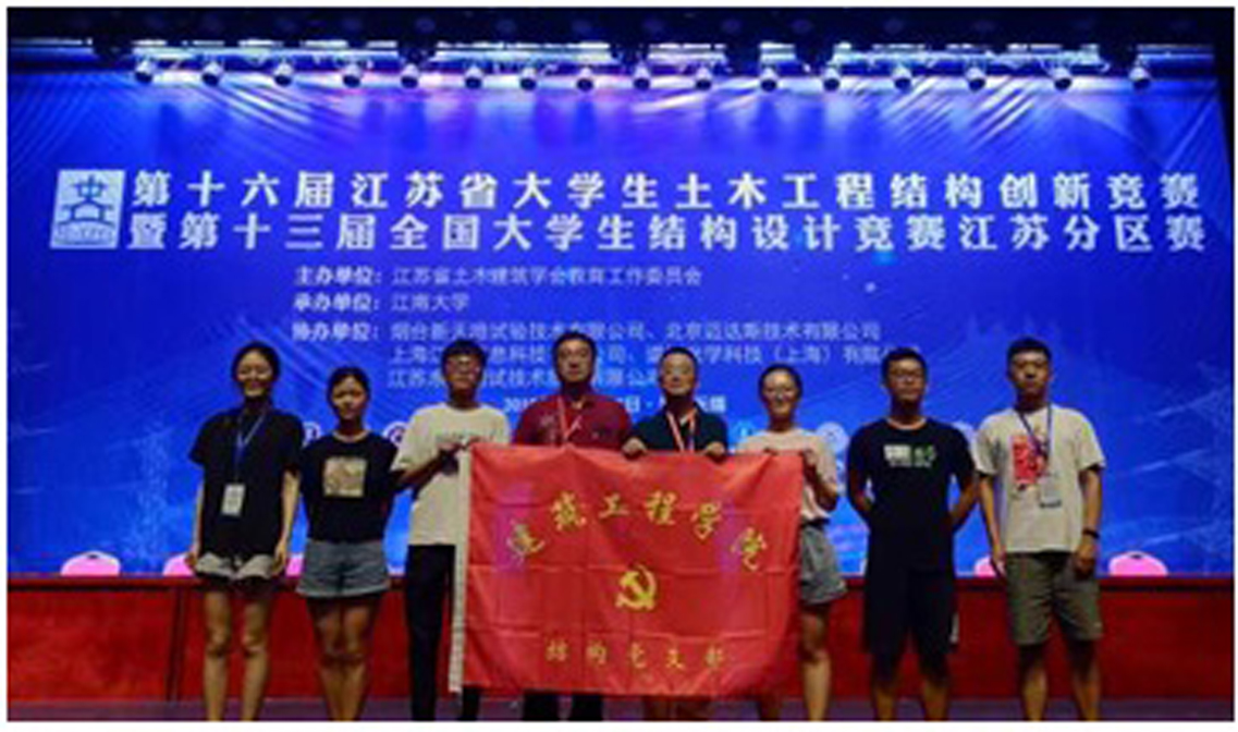 7月6日,2019年江苏省大学生土木工程结构创新竞赛暨全国土木工程结构创新大赛选拔赛在江南大学落下帷幕,由永利官网建筑工程学院于旭教授和过轶青老师共同指导的作品获得二等奖1项、三等奖2项的好成绩。其中,建筑工程学院李燕等同学创作的名为“钻石”的空间网架+张拉索穹顶结构模型荣获江苏省结构创新模型组二等奖;牛亚培等同学创作的名为“飓风”的空间桁架结构模型荣获江苏省结构创新模型组三等奖;李燕、黄鑫和叶铠锋三位同学设计制作的名为“夔牛擎天”的模型获得江苏省结构创新制作加载组三等奖。