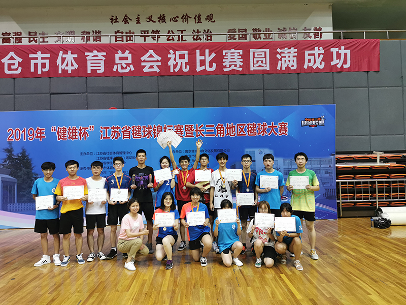 7月5日-7日,由江苏省社会体育管理中心、江苏省毽球(跳绳)运动协会、江苏省学生体育协会主办的2019年“健雄杯”江苏省毽球锦标赛暨长三角地区毽球大赛在太仓市举行。由各学院20名同学组成的毽球1队、毽球2队代表永利官网参加本次比赛。在体育部领队、主教练、助理教练的悉心指导下,队员们刻苦训练、奋力拼搏,最终从35支队伍中脱颖而出,1队获得男子团体第二名、女子团体第二名,2队获得男子团体第五名、女子团体第七名。同时,有9组进入双人赛前八名,其中男子双人赛荣获第一名、混合双人赛荣获第二名等。