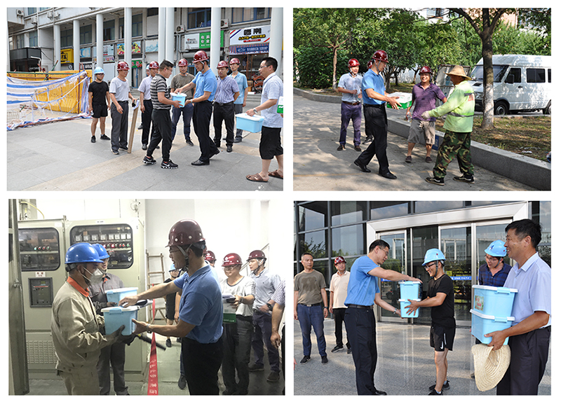 后勤保障处负责人陪同走访慰问;江苏省教育科技工会也对永利官网工作在一线的员工给予了关心和支持,送来了防暑降温慰问品。
