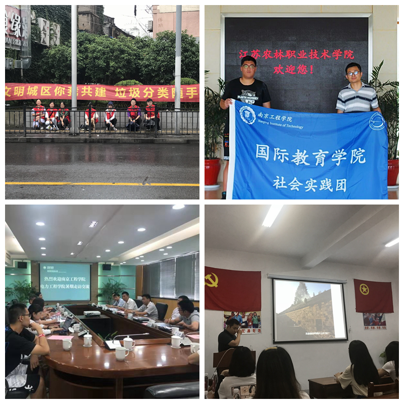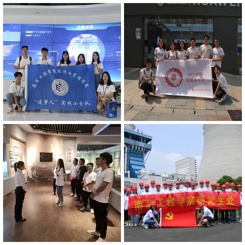 “追梦人”实践小队选取“2019年全国大学生创业实训营”中的大学生创客群体为研究对象,实地走访南京市创业企业,深入探究“众创空间”内大学生创客的发展现状,在此基础上形成了调研报告与学术论文。“信通青年说”团队围绕“5G技术”这一主题,通过参观考察、通信调研、学习体验等形式,了解我国通信事业的迅猛发展。“美丽中国行”团队来到中国改革第一村——小岗村感受当年18位农民敢为人先、勇于创新的精神和勇气。研究生团队先后走进下关发电所、国信淮阴发电有限责任公司等电力企业,重温电厂发展之路,感受70年来我国电力事业发展的光辉历程。“垃圾分类,环保先行”社会实践团队13名成员前往上海,开展“垃圾分类”社会实践活动,重点对上海垃圾分类情况进行了详细的调研学习。“信息技术发展调研”团队就高校中计算机软件的应用现况、应用发展历程以及发展中所遇到的困难等问题,走进江苏农林职业技术学院信息中心取经,收获满满。“南工程常州行”实践小队前往国网常州市供电公司和梅里500千伏变电站,以学习电网知识、了解调度流程、熟悉变电工作为主线,开展主题为“万家灯火,电力情深”的系列实践活动。“风之彩”美丽乡村实践团寻访溧水李巷,了解乡村建设中的问题、思路,探索新农村故事与精神。