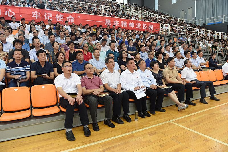 9月9日下午,周恩来纪念馆副馆长谭建华率宣讲团走进永利官网,为永利官网全体中层及以上领导干部和本科新生现场宣讲“恩来精神”。