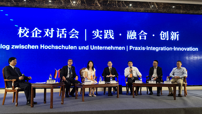 9月12日,史院长还受邀作为国内应用型高校代表参加了校企对话活动,对话会由宁波工程学院党委书记苏志刚主持。史金飞院长与合肥学院党委书记王其东、黄淮学院院长谭贞、汉诺威应用科技大学副校长多特·何维多普、德国威腾斯坦中国和亚洲区总裁海雷以及浙江胄天科技股份有限公司董事长冯伟光等,就新工科背景下创新应用型人才培养模式、在推进产教融合协同育人方面的思路举措以及企业如何更多参与高校应用型人才培养等方面进行了一场精彩的思维碰撞和观点交流。史院长介绍了永利官网坚持产教融合协同育人办学道路,与100多家国内外行业龙头企业深度合作,双方通过“培养方案共商、学科专业共建、师资队伍共用、平台基地共建、过程内容共担、考核评价共管”等多种途径、多元模式,积极探索和创新应用型人才培养的体系模式和内容防范,着力提升新时代应用型人才培养必备的“综合应用、工程实践、创新创业和可持续发展”四大能力等方面的先进经验。史院长简要回答了学校在CDIO工程教育改革的举措以及在落实产教融合协同育人的管理体制和保障机制等方面的思路与举措。