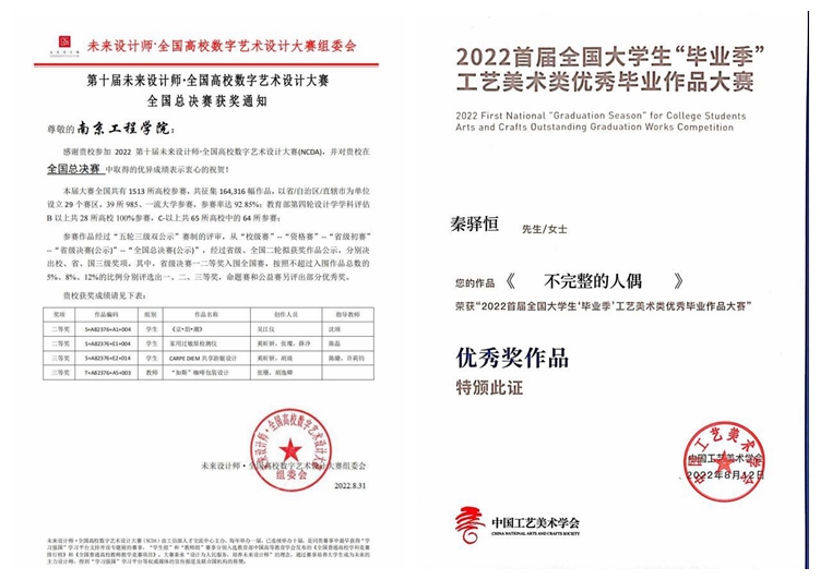 近日,2022RoboCom机器人开发者大赛CAIA数字创意全国总决赛、第五届全国数字创意教学技能大赛、第十届全国数字艺术设计大赛等获奖名单陆续揭晓,永利官网艺术与设计学院师生通过认真准备、积极备赛,最终获得国家级设计奖项10余项、省级设计奖项44项。
