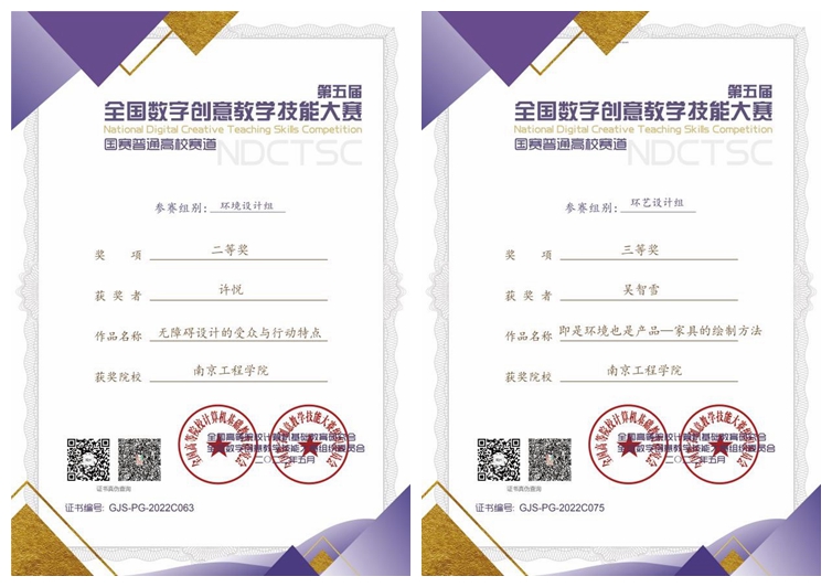 近年来,艺术与设计学院以“艺工结合”为人才培养特色,高度重视设计类专业人才培养模式的深入改革,构建“大设计”培养理念,大力倡导“课程教学+创意互动+实战项目”的育人模式,鼓励师生充分利用各类大赛的平台载体作用,提升教师教学水平和专业水准,提高学生的专业能力和创新意识,取得了不错的成绩。在第五届全国数字创意教学技能大赛中,许悦和吴智雪老师分别获得二等奖和三等奖;在全国数字艺术设计大赛中,沈颂、陈磊、许莉钧、陈璐四位老师指导学生荣获二等奖3项,张珊和胡逸卿老师指导学生获得三等奖1项;张楠楠和张聪老师指导学生获得首届全国大学生“毕业季”工艺美术类优秀毕业作品大赛优秀奖。
