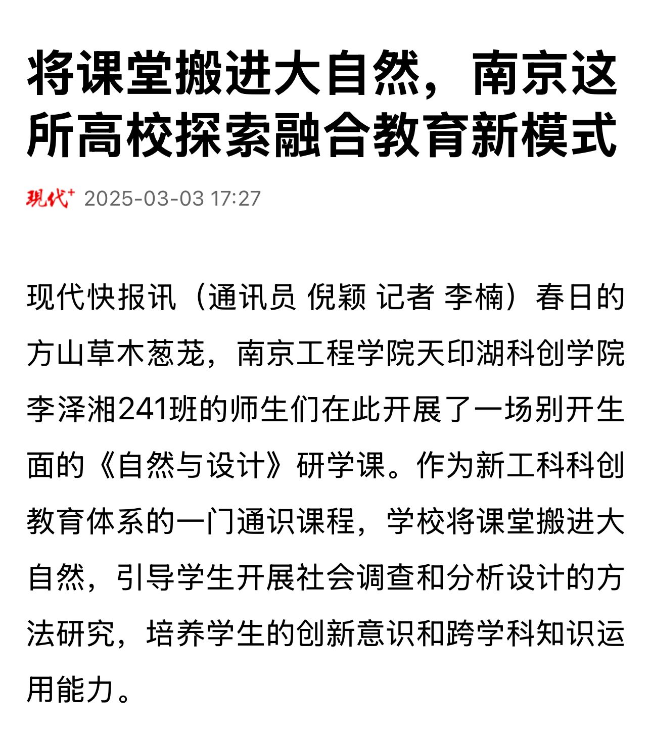 现代快报讯(通讯员 倪颖 记者 李楠)春日的方山草木葱茏,永利集团3044am官方入口天印湖科创学院李泽湘241班的师生们在此开展了一场别开生面的《自然与设计》研学课。作为新工科科创教育体系的一门通识课程,学校将课堂搬进大自然,引导学生开展社会调查和分析设计的方法研究,培养学生的创新意识和跨学科知识运用能力。