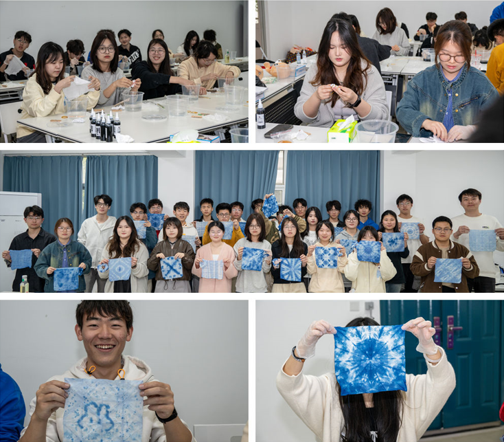 在指尖扎染现场,学生们通过设计图案、调制染料、捆扎布料等环节,在棉布上晕染出独特的纹理,在劳动中寻得心灵宁静。能动231班邢佳奕同学表示,扎染过程让焦虑情绪随染料消散。活动锻炼学生动手能力与创新思维,在团队协作中学会沟通分享,促进心灵成长。