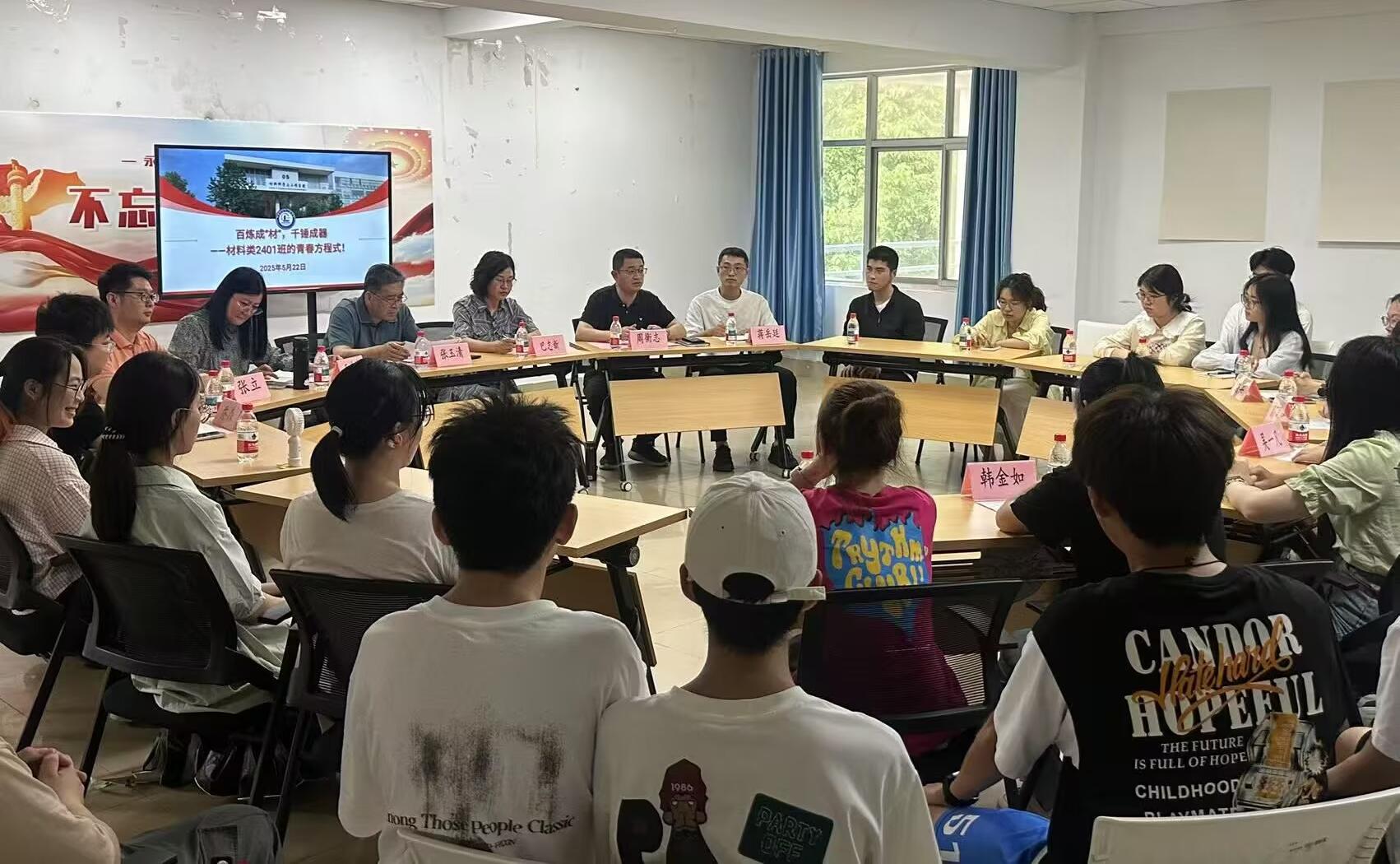 为深化“三全育人”综合改革,助力学生成长成才,5月22日下午,材料科学与工程学院在“一站式”学生社区举办“三进三知,三解三强”师生座谈会。校党委常委、纪委书记张玉清作为第二班主任出席,学院党委书记巴志新、优秀毕业生代表及材料类2401班全体同学等参加。