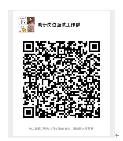 3.面试安排:面试考核具体安排请上述考生扫描下方二维码添加beat365英国官方网站助研岗位面试工作群,相关事项将通过微信群通知。