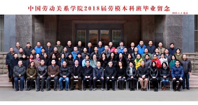 刘向兵校长在讲话中,代表学校领导班子,对顺利完成四年学业即将毕业离校的2014级劳模本科班学员表示热烈祝贺。他指出,2014级劳模本科班是学校人才培养的成果展示,学员们在校期间,刻苦钻研、勤奋好学,时刻彰显出劳模风采,发扬了劳模精神,在学校形成一道亮丽的风景线,对培养劳动情怀,实现把学校建成劳动关系和工会领域国内一流、国际知名大学的发展总目标起到积极的促进作用。他表示,经过四年的大学校园熏陶,每位劳模学员都有了长足进步和提升,衷心祝愿他们按照党的十九大报告要求,努力成为建设知识型、技能型、创新型劳动者大军中的一员,弘扬劳模精神和工匠精神,为营造劳动光荣的社会风尚和精益求精的敬业风气做出积极贡献。