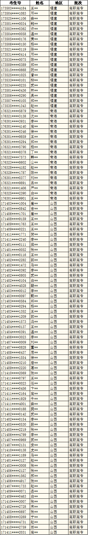 beat365已完成青海、福建、山西高职高专批的录取工作。
