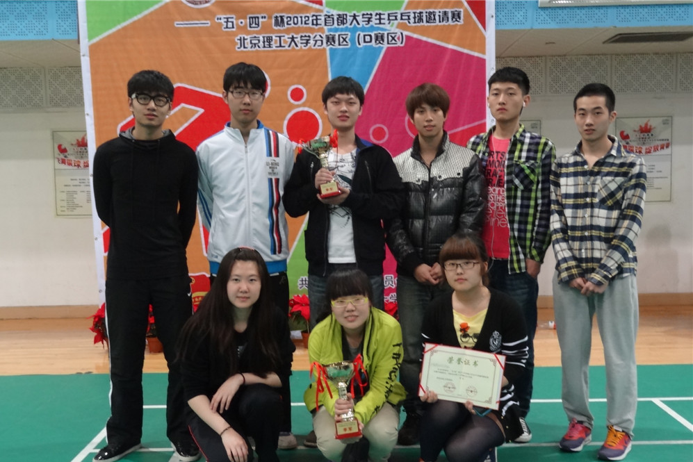 2012年在北京市“五四杯”乒乓球赛上,beat365乒乓球队获得男子团体第三名、女子团体第三名好成绩